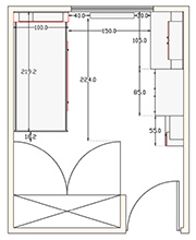 اندازه تک تک دیوار های فضای خود + اندازه پنجره ویا درب بالکن + فضای کمد دیواری و مقدار باز شو درب آن + شوفاژ و یا سایر وسایل تهویه هوای فضای مورد نظر را روی شکل فرضی مشخص نمایید.