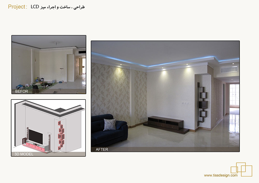 - طراحی و اجرای فضای نشیمن و ست TV منزل مسکونی _ تهران ، خیابان ولیعصر